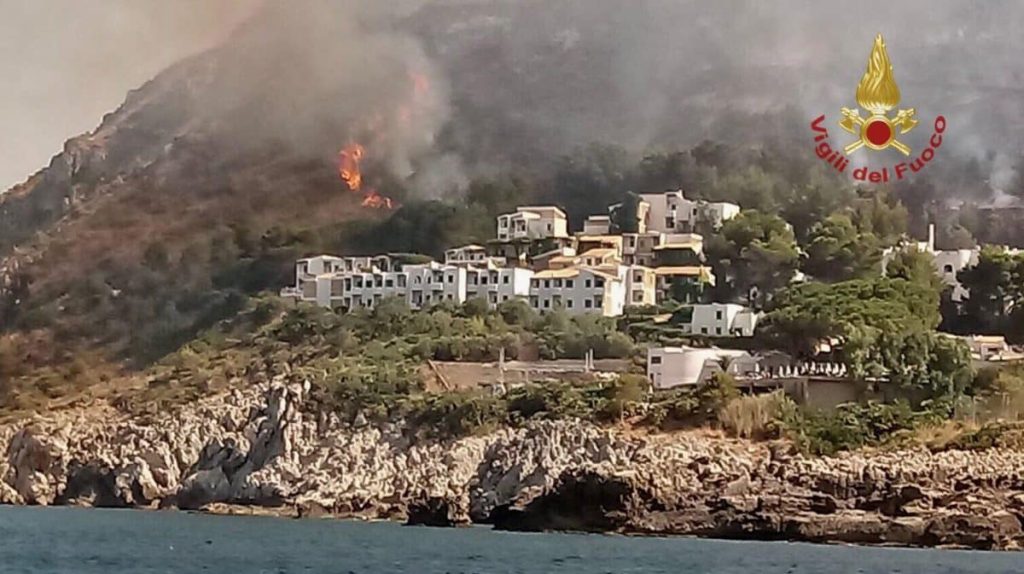 The Legambiente environmental group says some 26,000 hectares (more than 64,000 acres) of woodlands have been destroyed by flames in Italy since mid-June. Half of that has been in Sicily, where some 800 tourists were evacuated by sea Wednesday from a resort, many fleeing in just their bathing suits and flip-flops.