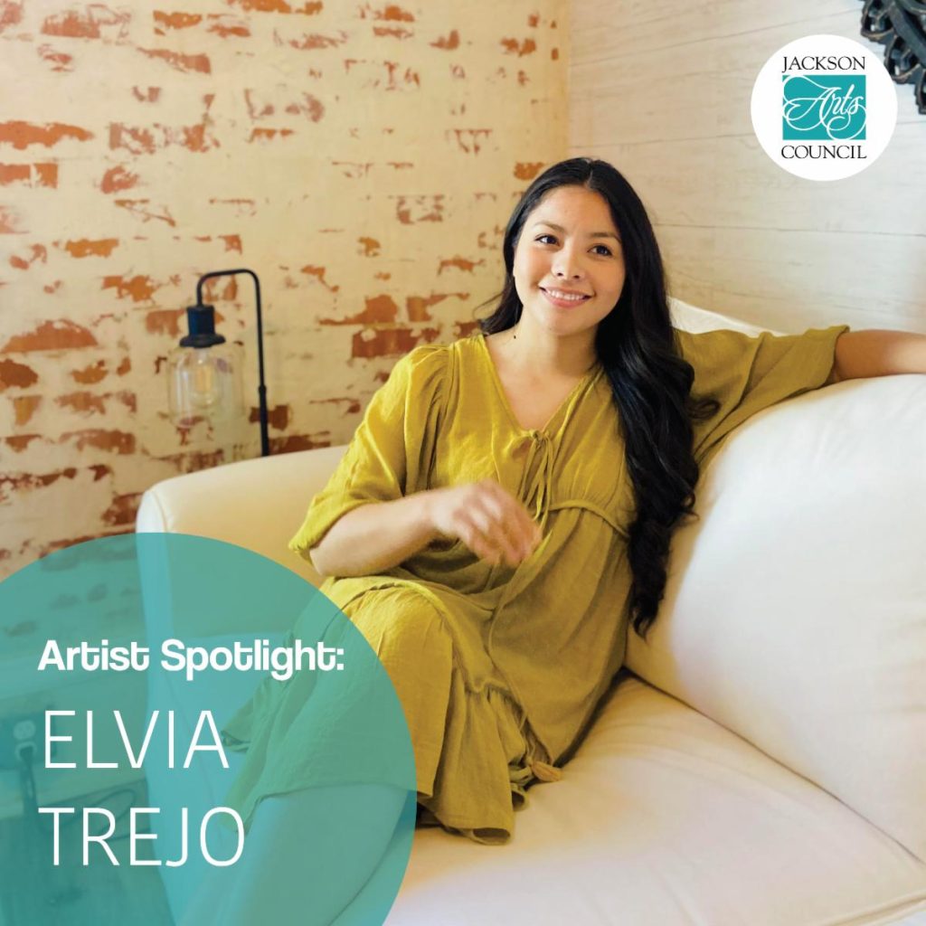 Meet Jackson-based artist, Elvia Trejo. Elvia’s primary forms of artwork are sewing, hand sewing, and crochet. She began creating art when she was around four years old when both of her grandmothers taught her how to sew. She started by sewing flowers, and then moved to sewing wearable art.