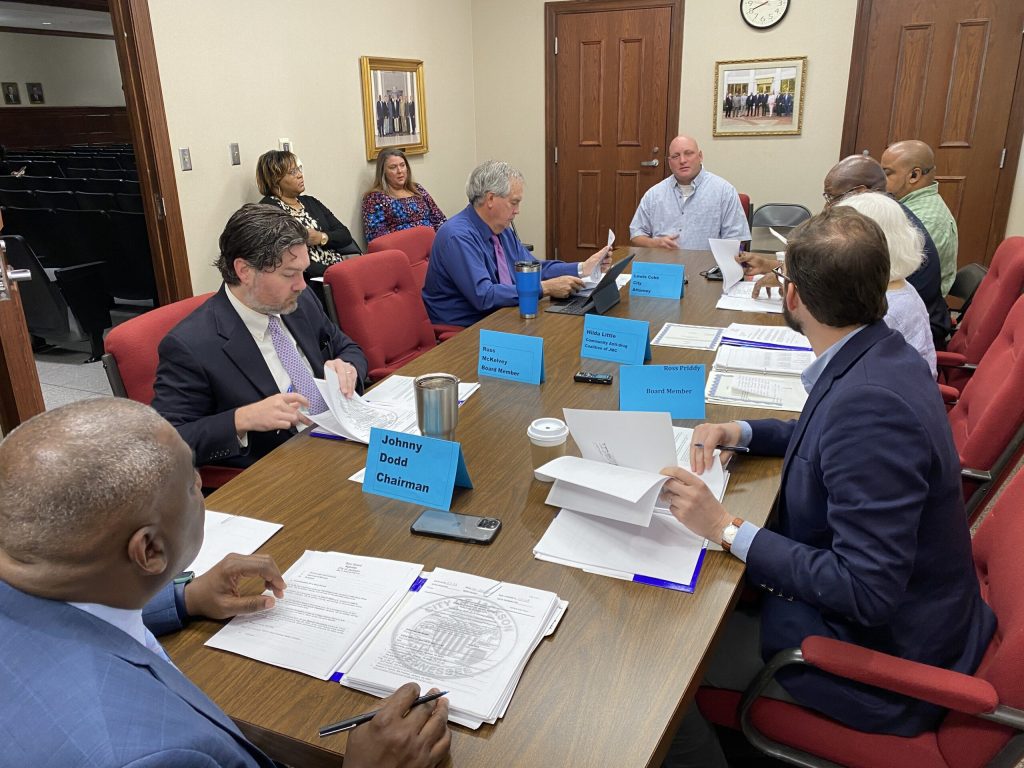 (PHOTO: Josh Wadley, center, is approved for a beer permit by the Jackson Beer Board)