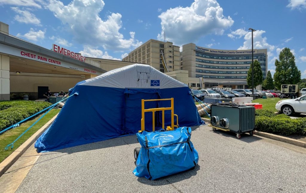 According to Dr. Mike Revelle, Chief of Emergency Services for West Tennessee Healthcare, the tents will be utilized to provide space to treat patients who are not as critical to reserve space in the main department where they take care of the “sickest” patients.