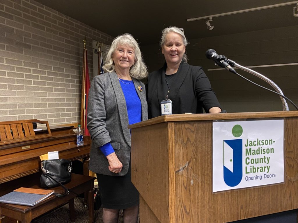 (PHOTO: Amy Dietrich, chair, Jackson-Madison County Library Long-Range Planning Committee, left, and Dinah Harris, director, Jackson-Madison County Library)
