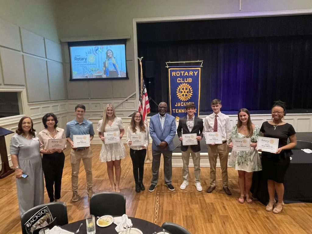 The Jackson Rotary Club selects one Junior Rotarian from each of the nine area high schools for the scholarship award.