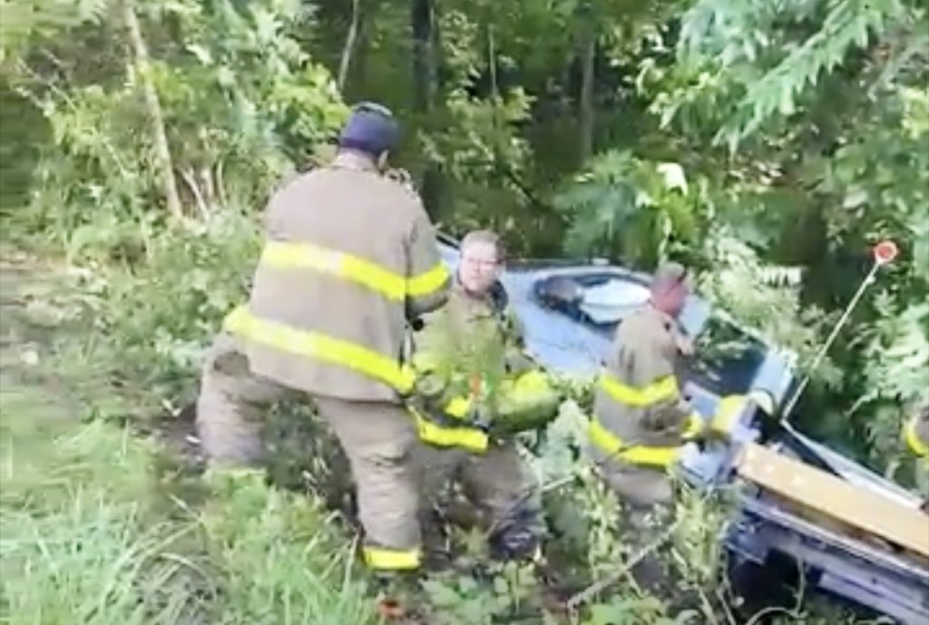 (PHOTO: Firefighters assist driver of truck carrying watermelons and cantaloupes – courtesy Downtown Ricky Brown Traffic Network)