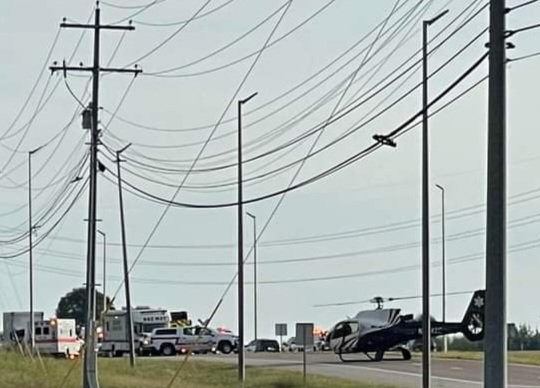 (PHOTO: First responders work automobile accident on Dr. F.E. Wright Drive – courtesy Susan Davie -NEWS/TALK 101.5 FM)