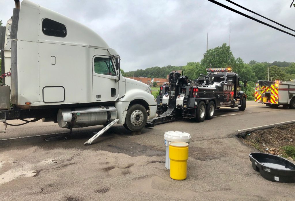 No injuries have been reported, but the Jackson Police Department, Jackson Fire Department Hazardous Materials team and the Medical Center EMS are working an automobile accident involving a semi tractor trailer on North Highland Avenue near Skyline Drive.