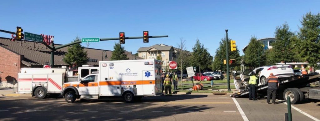 (PHOTO: First Responders work an automobile accident on North Highland Avenue near Grubbs Grocery – courtesy Downtown Ricky Brown Traffic Network)