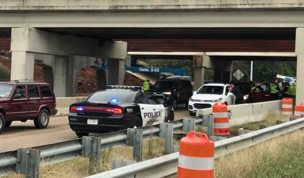 (PHOTO: First Reponders work automobile accident on North Highland at I-40 underpass – courtesy Downtown Ricky Brown Traffic Network)
