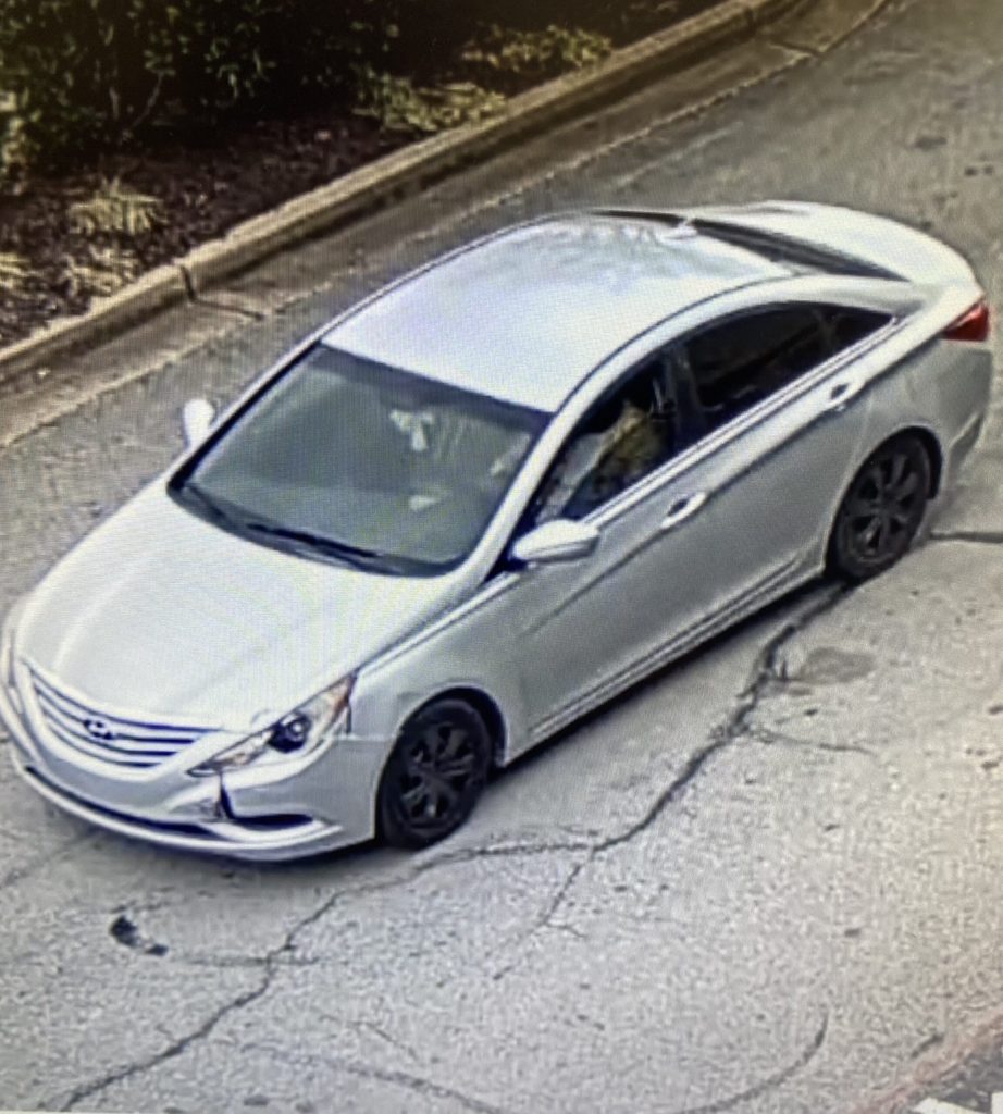 The suspect is described as a dark skin black male. The suspect’s vehicle is a silver Hyundai with dark tinted windows and damage to the front driver’s side headlight and bumper.