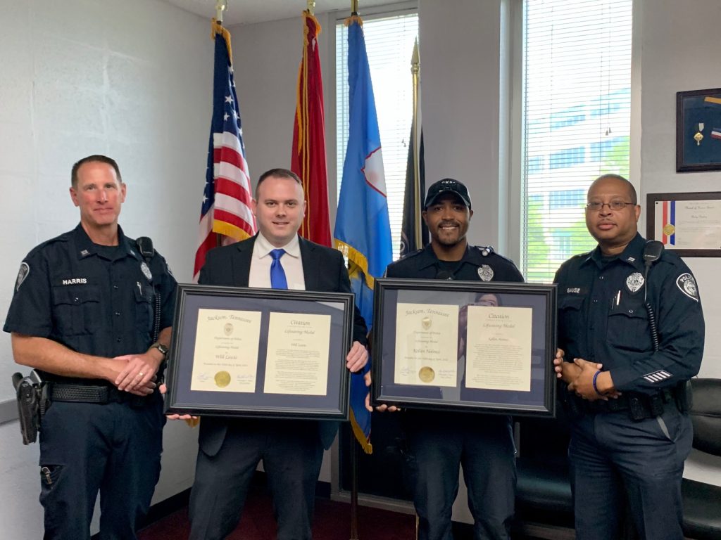 Please join Jackson Police in congratulating Sergeant Adam Pinion, Officer Clint Paton, Officer Kellen Holmes, Officer Kennis Shell, and former Jackson Police Officers Blake Lambert and Will Lewis for their acts of heroism. Due to their immediate actions and bravery, lives were saved.