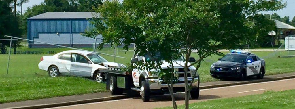 No injuries have been reported, but an automobile traveling south bound on Dr. F.E. Wright Drive left the road and went through a fence at the Boys & Girls Club at 746 Lexington Avenue.