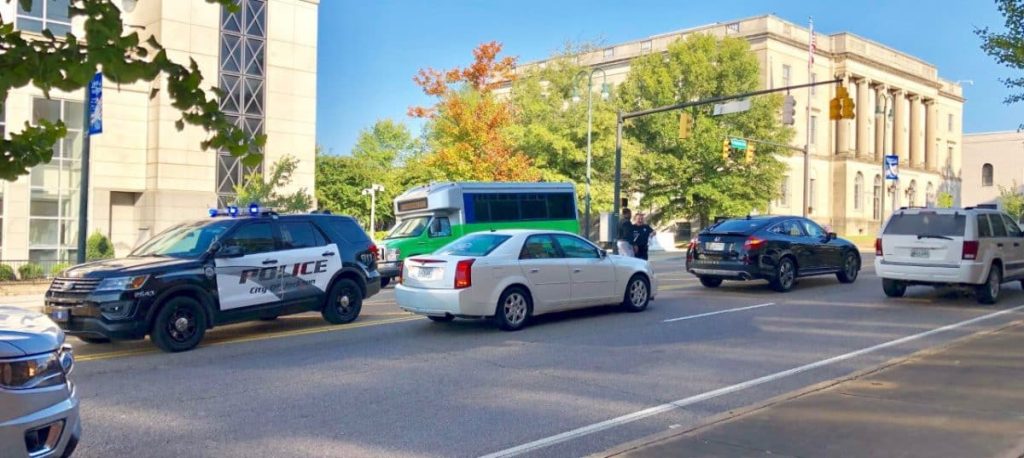 (PHOTO: Automobile accident on North Highland at Baltimore Street – courtesy Downtown Ricky Brown Traffic Network)