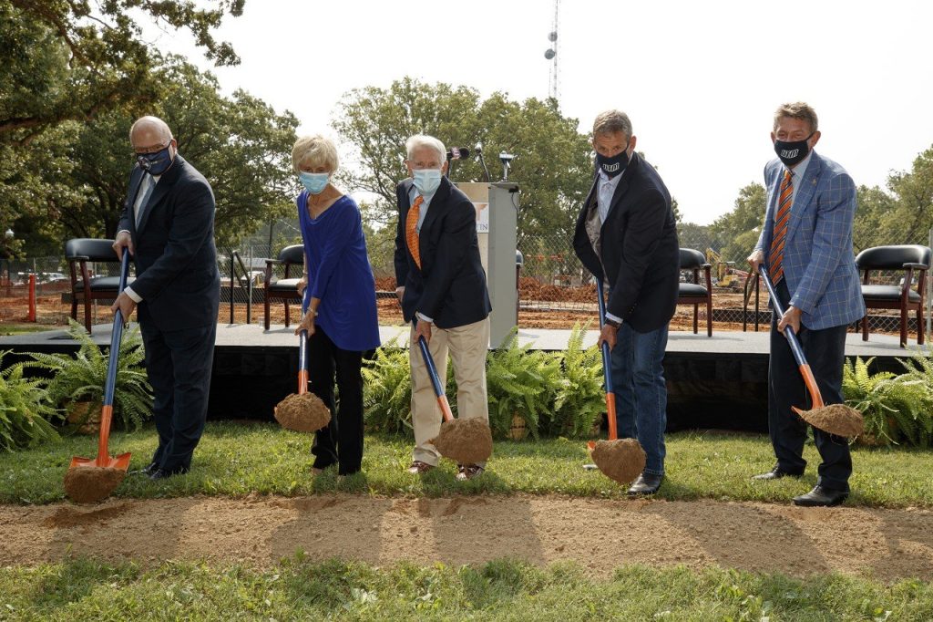 Photo: Dr. Philip Acree Cavalier, Carol and Bill Latimer, Tennessee Gov. Bill Lee and UT President Randy Boyd break ground on the Latimer Engineering and Science Building Sept. 18. The building is scheduled to open fall 2022)