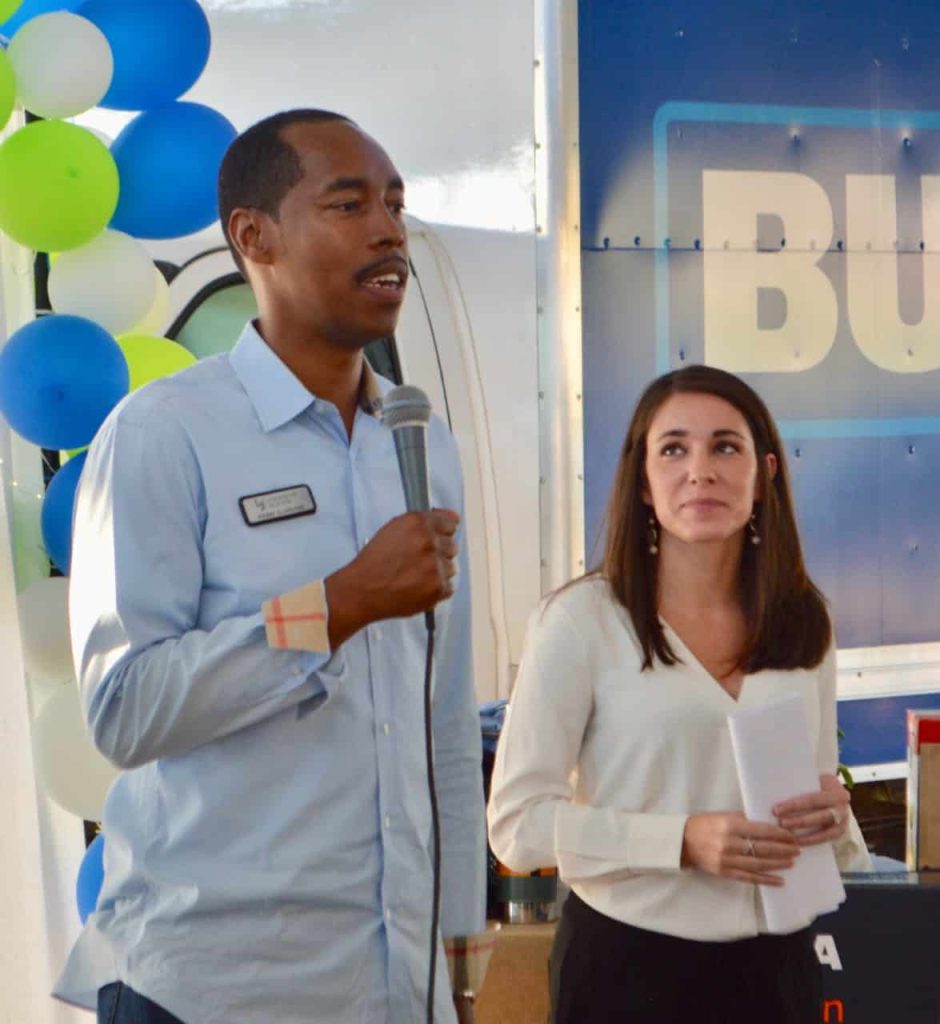(PHOTO: Leadership Jackson 2018 Chair Pierre DuVentre, owner, D’Top Roofing and Repair; and the program’s vice chair, Lauren Saliba, branch manager, Apria Healthcare)