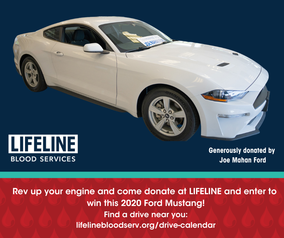 From LIFELINE Blood Services – This is our last full month for the 5th Annual Car Giveaway, a 2020 Ford Mustang made possible by Joe Mahan Ford! The lucky winner’s name will be drawn Tuesday, Sept. 5. The last day to donate at our Jackson Center is Sept. 2, and Sept. 3 in Dyersburg.