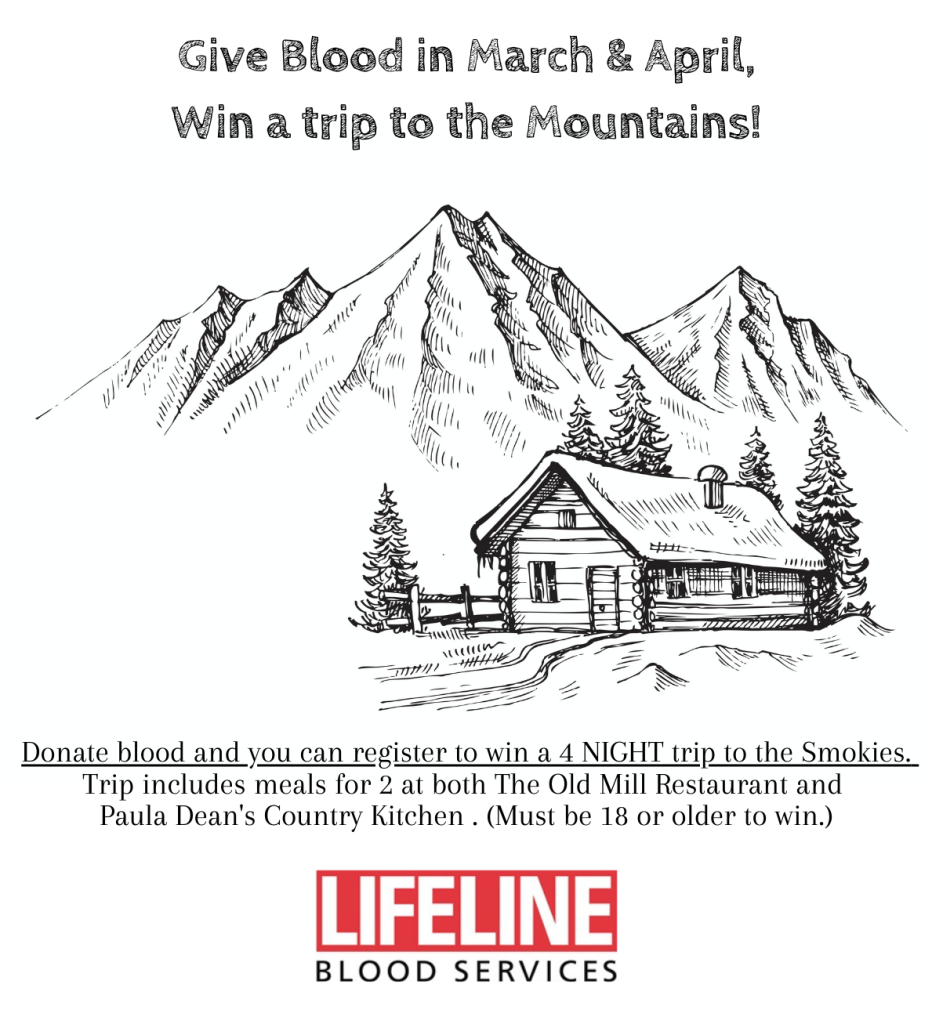 LIFELINE Blood Services – Give blood in March & April; win a trip to the mountains
