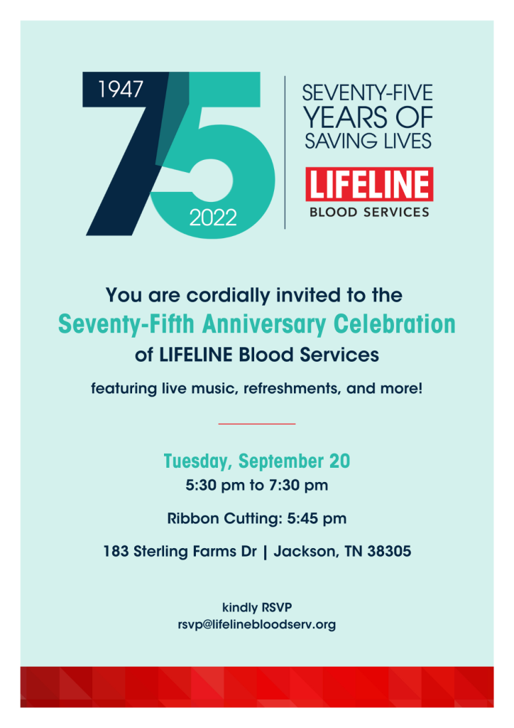The 75th Anniversary Celebration is scheduled for Sept. 20 at the Jackson Center located at 183 Sterling Farms Drive.