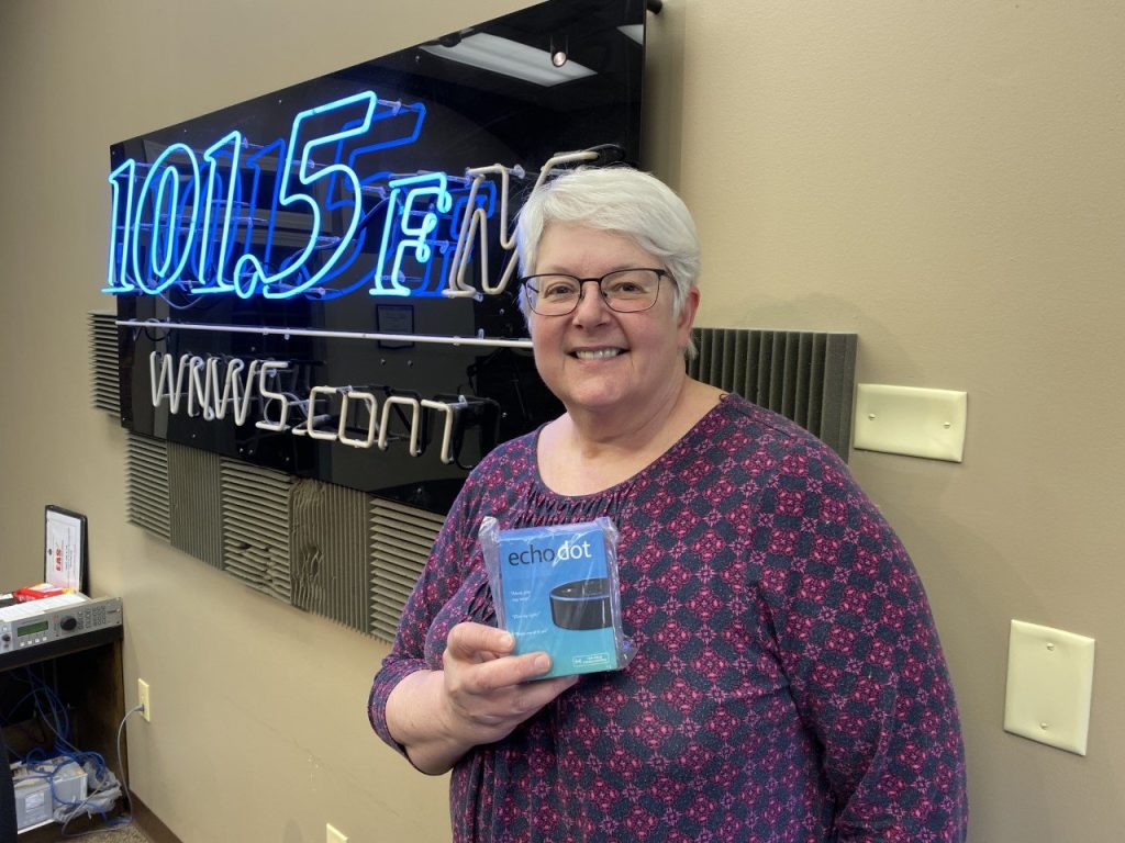 Belinda Patterson, a regular listener, won an Amazon Alexa Echo Dot Every day, simply by pushing the Enter Now banner found on the News/Talk Smartphone app.