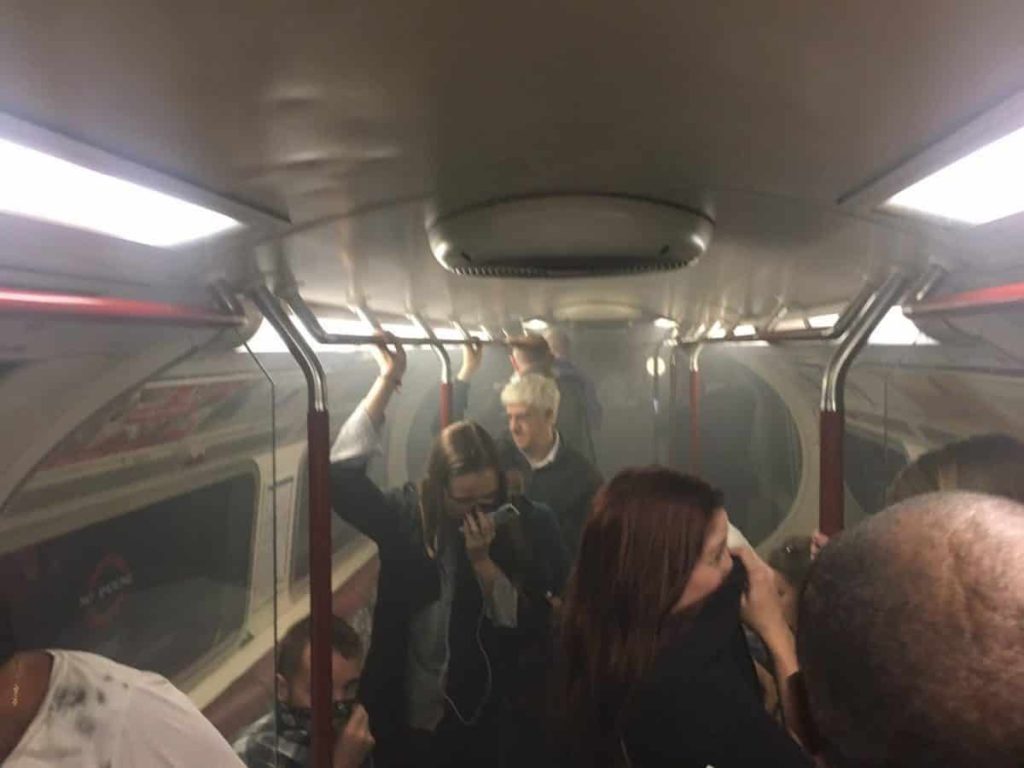 Passenger Tom Singer tweeted a photograph of smoke filling a carriage and spilling onto a platform. Another photo posted by Joe Bunting showed passengers in a smoky subway car covering their mouths and noses.