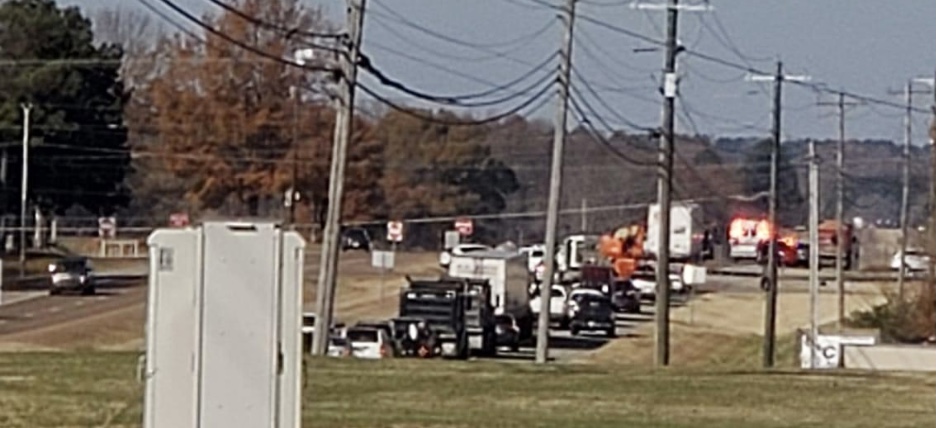 (PHOTO: Madison County Sheriff’s Department, Medical Center EMS and Madison County Fire Department are working an automobile accident on U.S. highway 45 West at Three Way – courtesy Downtown Ricky Brown Traffic Network)