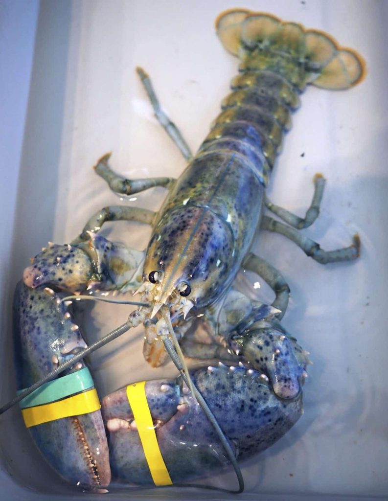 Center aquarist Rob Royer says Ward’s blue lobster will go on display in the “exotic” lobster tank once it acclimates to the water.
