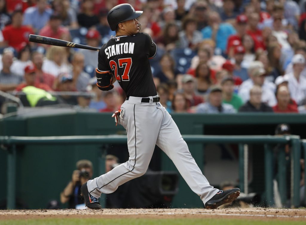 Stanton hit 59 home runs, the most in the major leagues since 2001. The outfielder is owed $295 million over the final decade of his record $325 million, 13-year contract.