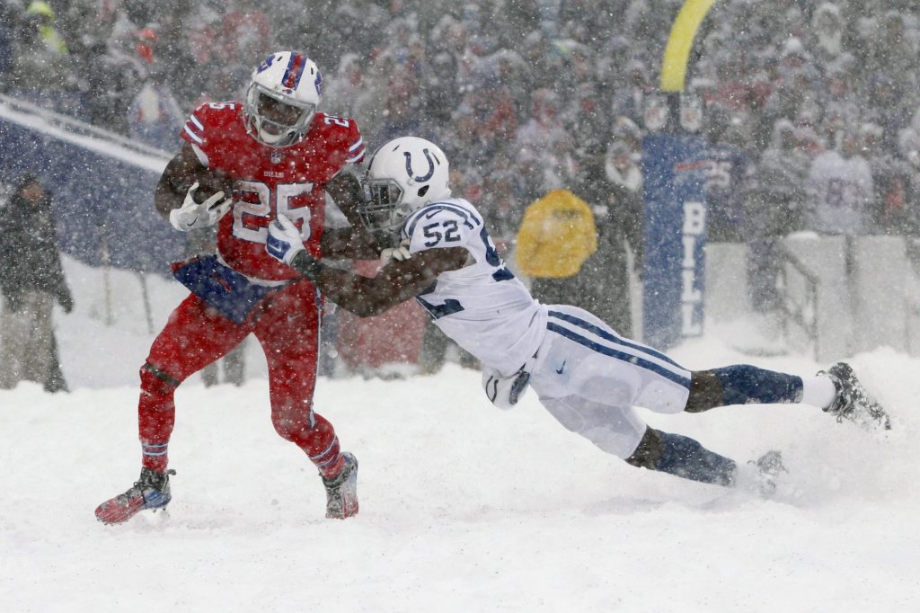 Punted balls stuck in the snow. Colts receiver Chester Rogers disappeared into a snowbank in the end zone after being unable to stop on a deep pass from Jacoby Brissett. Rogers made the catch, but couldn’t keep both feet inbounds.