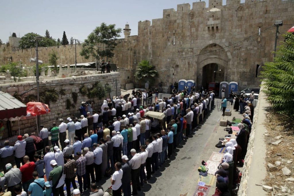 The local Muslim leadership and the Jordanian-run Waqf have urged the faithful to pray in “streets and alleys” rather than pass through the metal detectors.