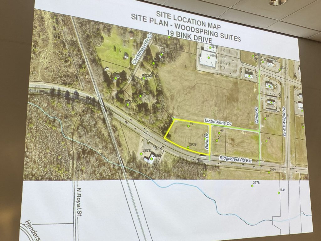 The Jackson Municipal Planning Commission approved a consideration of a site plan for WoodSpring Suites, which will be located at 19 Bink Drive – 2939 Ridgecrest Road Extended – in Park Place West.