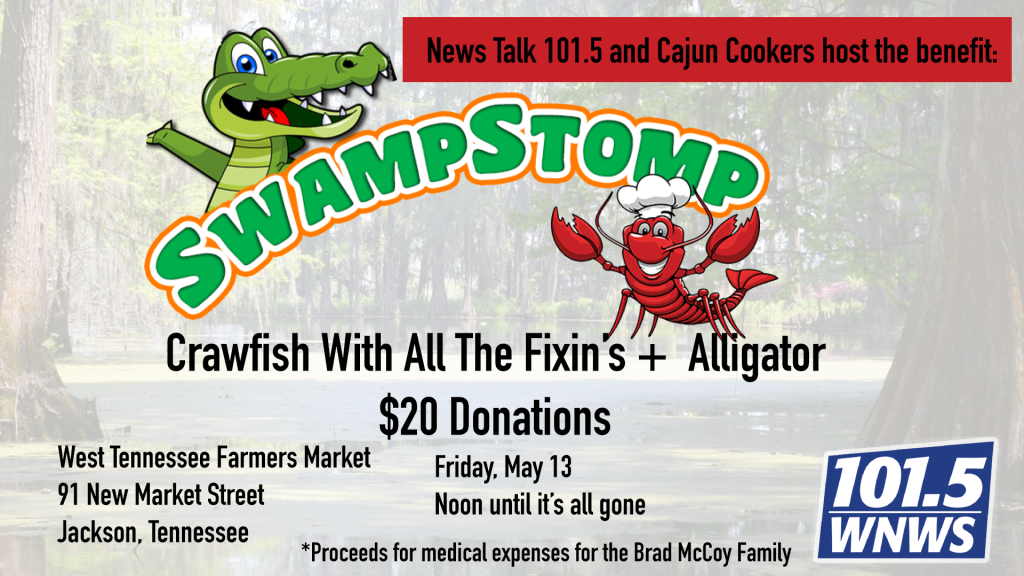 The News/Talk 101.5 “Swamp Stomp” features Darrell Hicks of Cajun Cookers serving up a crawfish plate with all the fixins’, red beans and rice, alligator bites, and drink for a $20 donation.