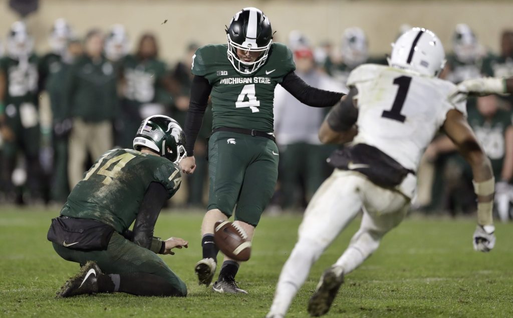 Michigan State: The Spartans play at Ohio State for the first time since beating the Buckeyes there two years ago on Geiger’s kick. The teams met last season in East Lansing, with Ohio State coming away with a 17-16 victory.
