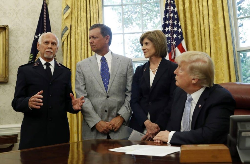 “Families have given food and shelter to those in need. Houses of worship have organized efforts to clean up communities and repair damaged homes,” Trump said during an earlier meeting with religious leaders. “People have never seen anything quite like this. Individuals of every background are striving for the same goal: to aid and comfort people facing devastating losses.”