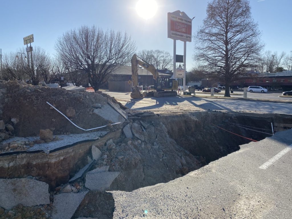 A 40-plus year-old culvert collapsed on part of a gravel parking lot across the street from Casey Jones Village causing a sinkhole, January 2.