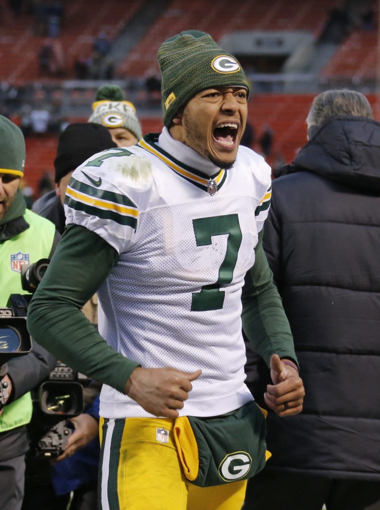 A 65-yard punt return by Trevor Davis set up Green Bay’s score, which came after Hundley was ruled down inside the 1 after an apparent 6-yard scoring run. Out of timeouts, coach Mike McCarthy elected not to risk a run and Hundley rifled his pass into the corner for Adams, who beat Jason McCourty on the play.