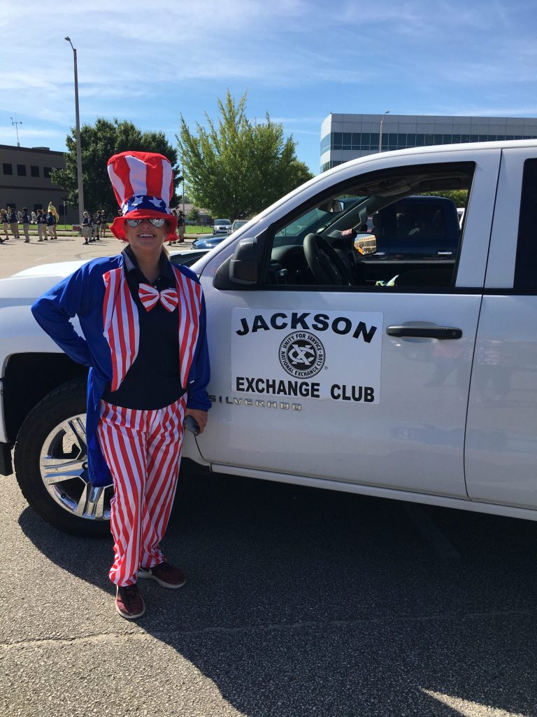 (PHOTO: Lindsay Kilburn – Crime Stoppers Assistant Director/Composite Artist at Madison County Sheriff’s Department – is dressed as ‘Aunt SAMantha for Bicentennial Parade – courtesy Amy Allen – Grace Media Group – NEWS/TALK 101.5 FM)