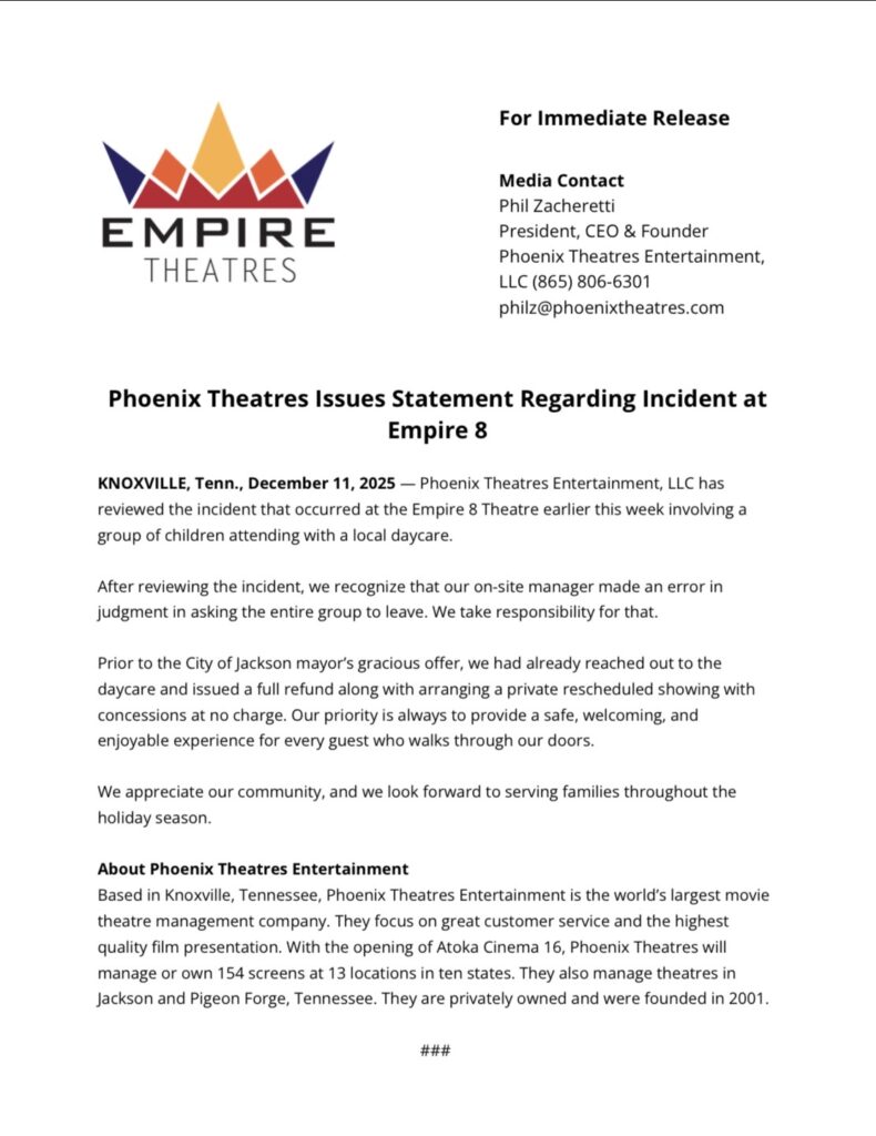 1 thought on “Phoenix Theatres Issues Statement Regarding Incident at Empire 8”
