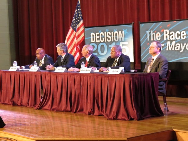 Candidates answered questions submitted by constituents. Â The topic for this event was Crime. Â Questions ranged from selection of a police chief, and whether or not Mayor Gist’s Blue Impact plan is effective, to the effect of single parent homes and other socioeconomic factors.