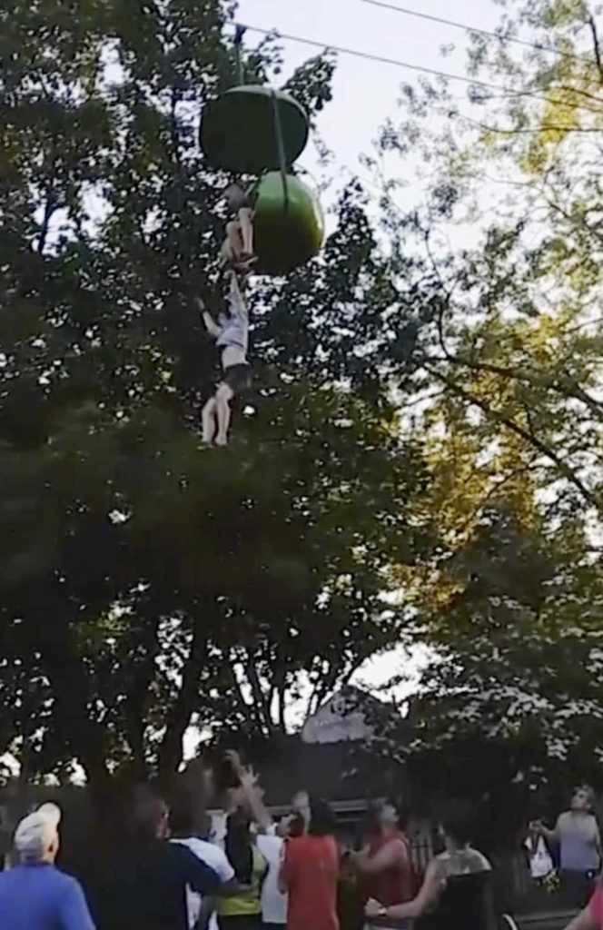 After the girl began dangling from the gondola, word was relayed to the operator to stop the ride. As the teen helplessly flailed her legs, people on the pavement below yelled for her to let go and they would catch her. Matthew Howard Sr., a contractor from Schenectady visiting the park with his family, was among those who broke her fall.