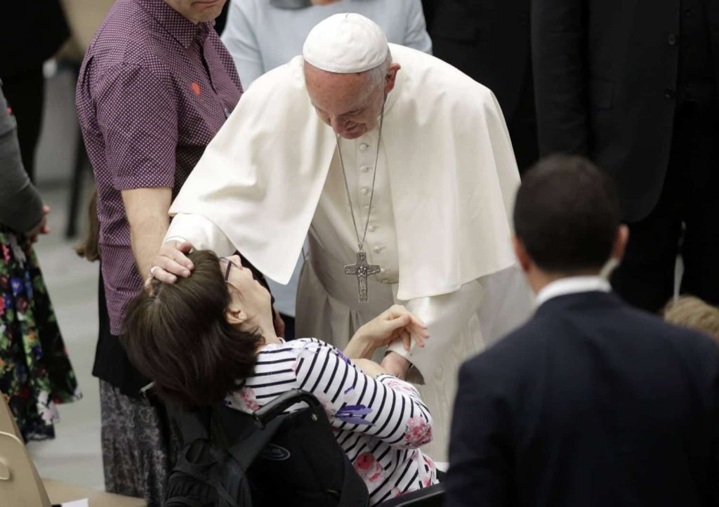 One by one, Francis blessed and greeted each of the 150 people with Huntington’s, as well as their family members and caregivers, who traveled from around the world for the hour-long audience in the Vatican audience hall. Organizers said the meeting marked the first time a world leader had recognized the plight of those who suffer from Huntington’s.