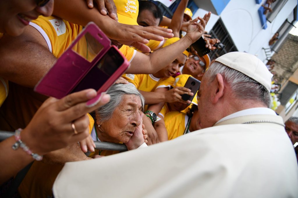 “Hopefully early tomorrow, myself and all of Peru will get a chance to see him up close,” said Nicolas Astete, one of more than 3,000 people who gathered Saturday night outside the Apostolic Nunciature in Lima, hoping to see a glimpse of the pope before he retired for the evening.