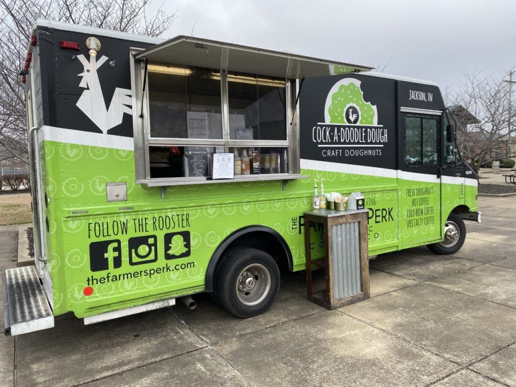 A familiar food truck sighting is The Farmer’s Perk – Cock-A-Doodle Dough Craft Doughnuts – which is owned by Ignacio Morales and generally found at the corner of West Lafayette Street and Shannon Street at The West Tennessee Farmers’ Market.