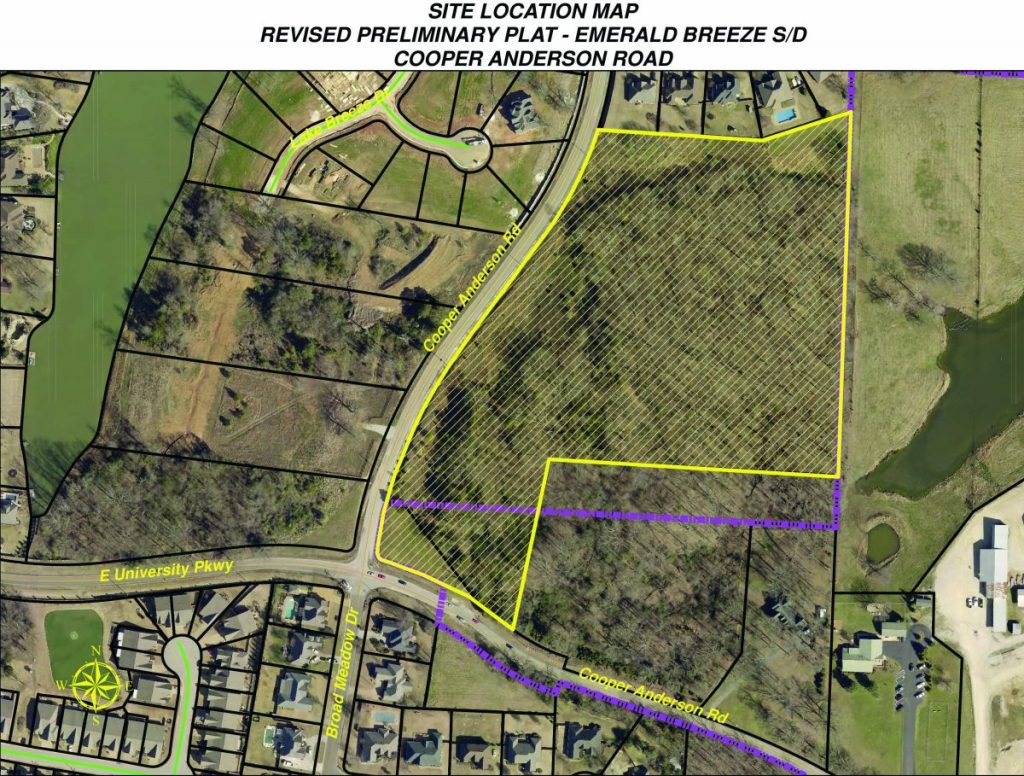 The consideration of this revised preliminary plat is for an area referred to as ‘Emerald Breeze,’ comprising 42 lots on 13.87 acres.