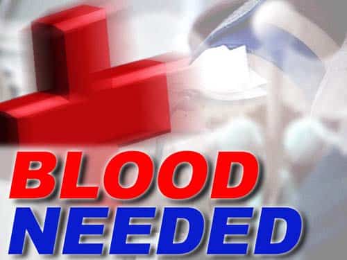 blood for patients in local hospitals. “We are issuing an immediate appeal for blood in order to meet the