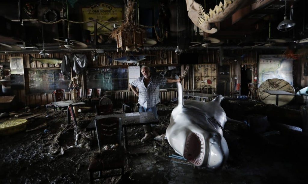 Bob Campbell, a handyman with the nickname “Side Job,” is sleeping for now on an air mattress and taking showers outside. Still, he’s finding plenty of work building fences and a staircase at Moby Dick’s — tasks that all appear to have survived the storm.