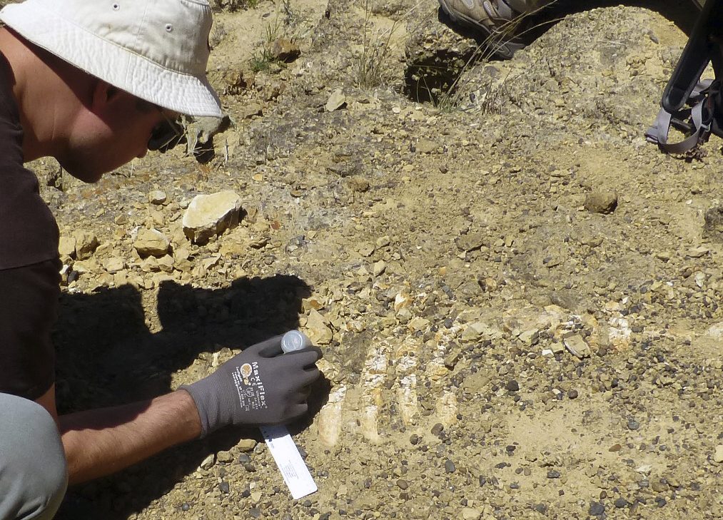 That surface has been covered with plaster-impregnated bandages and burlap to protect the fossils until work to excavate them can resume in late spring, Menard said.
