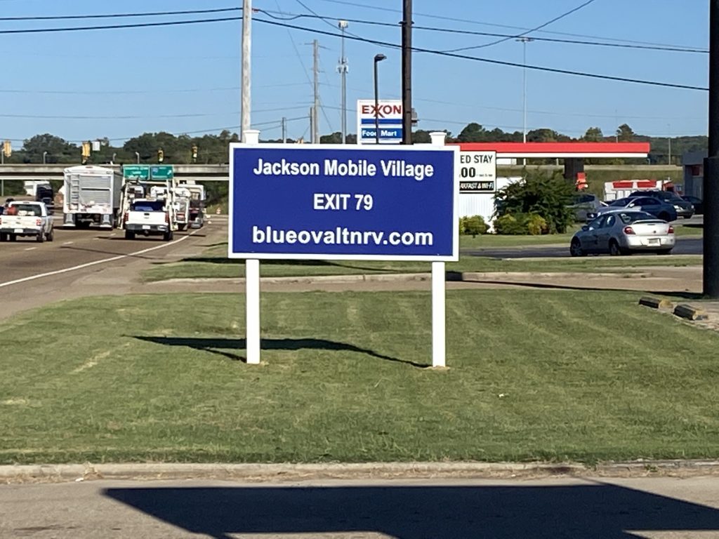 Jackson Mobile Village exit 79 – Hollywood Drive – off Interstate 40 in Jackson – 41 miles to Blue Oval City