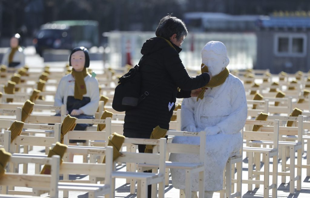 Under the deal, Japan agreed to provide 1 billion yen ($8.8 million) in cash payments to the dwindling number of surviving victims, while South Korea said it will try to resolve Japanese grievance over the statue in front of the embassy.