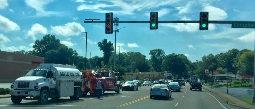 (PHOTO: Sayle Oil tanker truck is stalled on North Highland Avenue near Campbell Street – courtesy Downtown Ricky Brown Traffic Spotters Network)