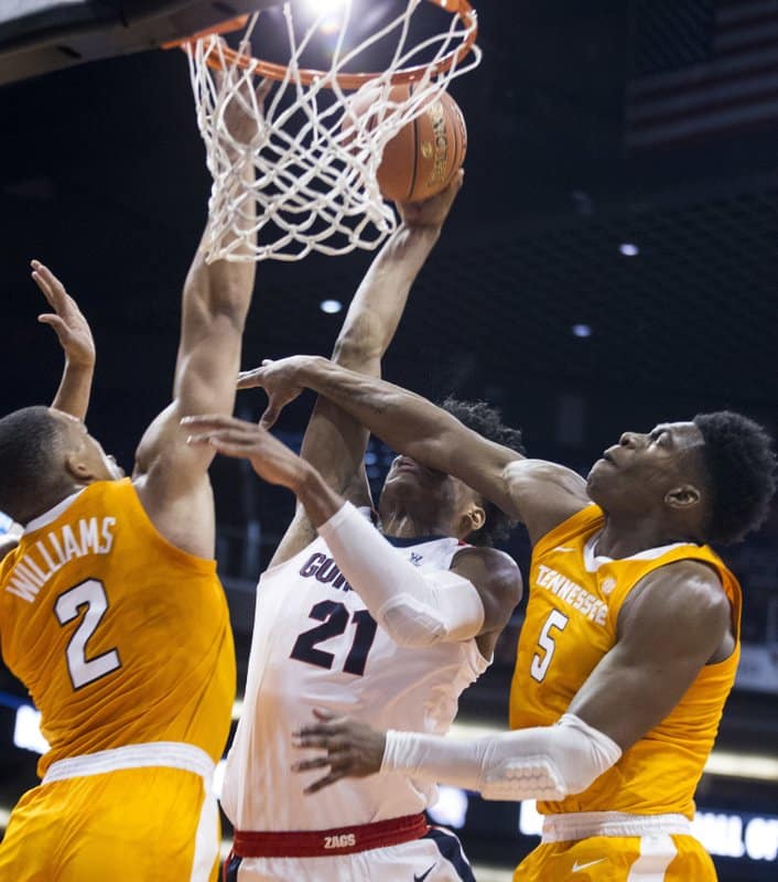 Gonzaga built a quick seven-point lead in the second half, let Tennessee claw back, then went up 58-50 on a pair of Norvell 3-pointers as he traded baskets and trash talk with Schofield.