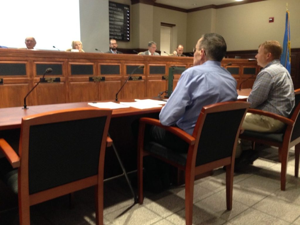 (PHOTO: Scott Chandler, City Engineer for the City of Jackson, right, and Al Laffoon, former City Recorder for the City of Jackson (left), during the Jackson City Council meeting in February, 2019)