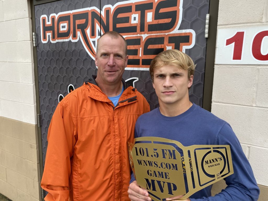 (PHOTO: Scott Stidham, South Gibson County head football coach with quarterback Ty Schrotberger, 101.5 FM & WNWS.COM Player of the Week for Sept. 3)